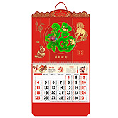- 特度對(duì)開中國紅金雕窗花掛歷